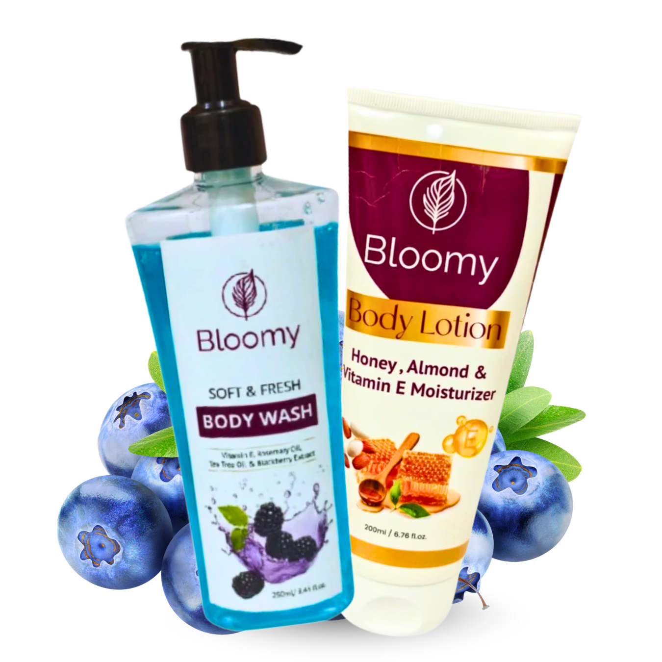 🧴 Bloomy Body Lotion – Enriched with Honey, Almond, and Vitamin E to deeply moisturize, soften rough patches, and give long-lasting smoothness.